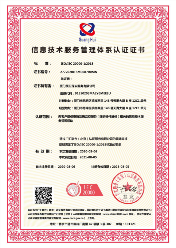 IEC20000信息技術(shù)服務(wù)管理體系認(rèn)證證書